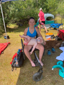 On August 18, 2020, my family left for our first overnight away from home since that March, when the shelter in place orders were issued. We planned a two-night camping trip with our pandemic pod and drove four and a half hours into the Sierra National Forest, to Hume Lake, in our new-to-us, not yet converted Sprinter campervan-to-be. I use a wheelchair and Smart Drive pretty much full time, but was prepared to take only my big, heavy hiking chair, knowing I probably wouldn’t use my everyday chair at the campground. At the last second, my husband threw it in the van because we had extra room. With no cell service to speak of, we cooked, swam, kayaked, and basked in the change of scenery. I had a writing deadline, so the afternoon after we arrived, we drove to a camp across the lake rumored to sell access to wifi. We planned to connect so I could send my email, check out that side of the lake, and then head back to make dinner.