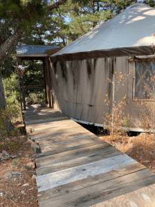 After a couple weeks in the house, we moved to a yurt on another friend’s property. Before we moved in, he built a deck so I’d have level entry from the driveway, rather than having to climb down a hill and then up a set of stairs, and the situation inside was easier for me to navigate than the house. Basically, a large studio apartment. At the yurt, which is situated on a little mountaintop in the Santa Cruz Mountains, about an hour north of our house, the challenges were primarily outdoors, where the terrain was bumpy and steep. The main house, where we did our laundry, was up a hill I couldn’t manage without help, and the wifi connection in the yurt was poor so I couldn’t communicate much with the outside world. I felt isolated and useless when it came to anything outside our dwelling, and frequently had to call Bryan away from work to help with kid problems when they were out of my reach or to help me with things like laundry and getting around the property. By the time we moved home on October 31, my self-esteem was at an all-time low. It had been two and a half months since I’d been in a living situation in which I could function like I was used to, and despite my overwhelming gratitude for the generosity and thoughtfulness of our friends, the relief of being back in the space I’ve so carefully crafted for my use washed over me like a tidal wave.